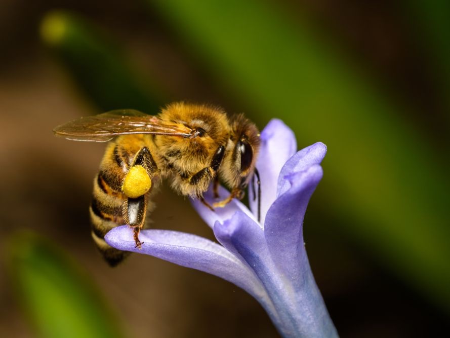 Insects have evolved specialised characteristics to be able to pollinate this way. Many insects have fine hairs on their legs which picks up pollen and prevents pollen from falling off during flight. In addition, insects have a long proboscis (mouthparts) which allows them to reach down into taller flowers to get nectar and pollen.